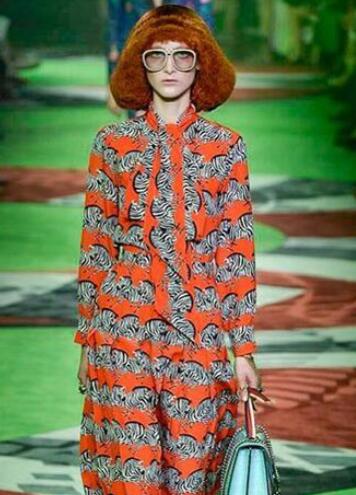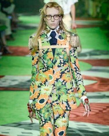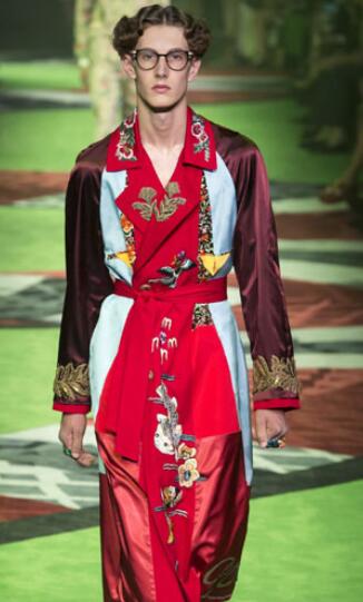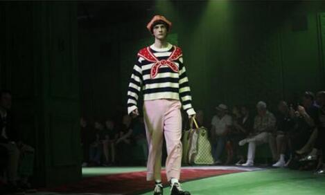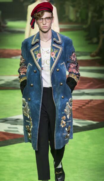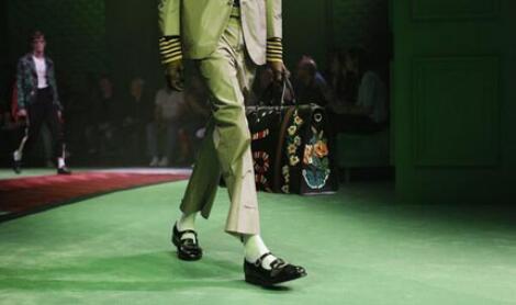北京时间6月19日晚,2017春夏米兰男装秀场上,gucci再一次用强烈的色彩、丰富的灵感营造了一场充满神话色彩的视觉盛宴,设计师alessandro michele本次将秀场打造成神秘又玄幻的绿色空间,同样的珍奇异兽、植物印花穿梭于秀场中,还有t台上的巨蟒,犹如处于丛林探险的境遇一般,设计师受多种文化启发,电影、旅行、动漫等等,经过加工设计,和谐地融合在整个系列中。