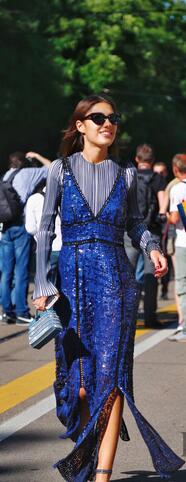 高开衩群的简约风是最流行的穿搭方法,随着色彩的单纯而散发浓郁的时装激情,为穿着者带来最直接的感官冲击。所以不要吝啬你的大长腿,尽情展现吧!