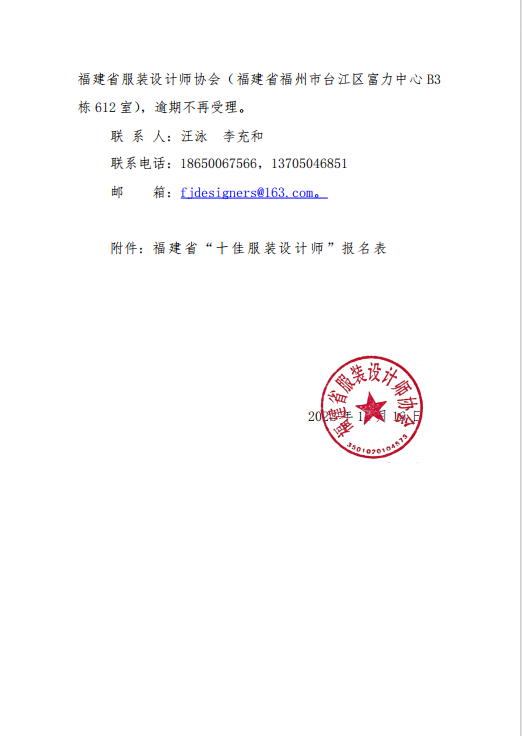 关于第六届福建省“十佳服装设计师”推选活动的通知